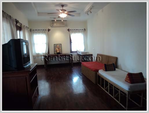 Lao classic house with fully furnished, there are 5 houses in the community with security guard, some houses with Mekong view while some houses with no view of Mekong view. The house with Mekong view, the rental price is 1,200 USD/month while the others are 1,000 USD/month. However, the rental is still negotiable. It should take about 10mn to town by driving. For the moment, two houses are available.
