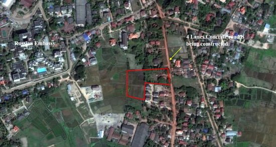 Land with 43m at the frontage located by the main 4 lanes concrete road which being constructed from Diplomatic area towards Tadua Road by Suanmone Market. The plot comes as an "L"shape. It is suitable for housing project or serviced apartment.