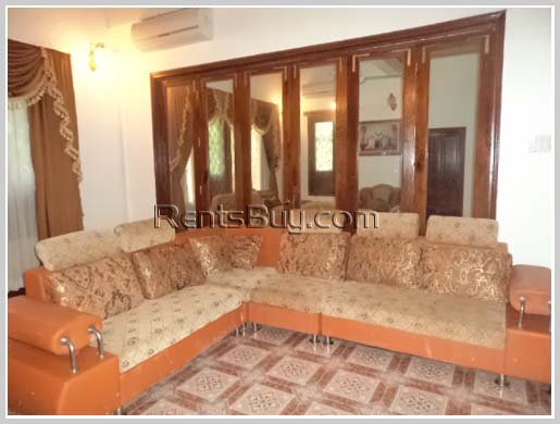 The fully furnished house has beautiful furniture and with large nice garden is located about 3km from Thatluang Stupa. The price is negotiable.