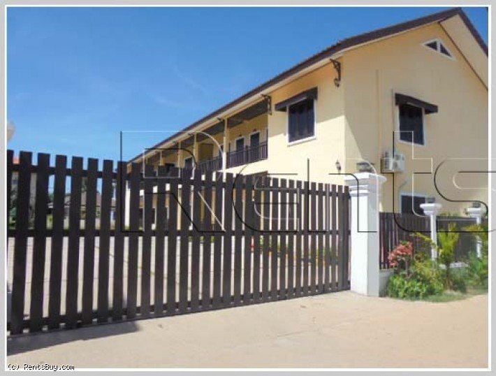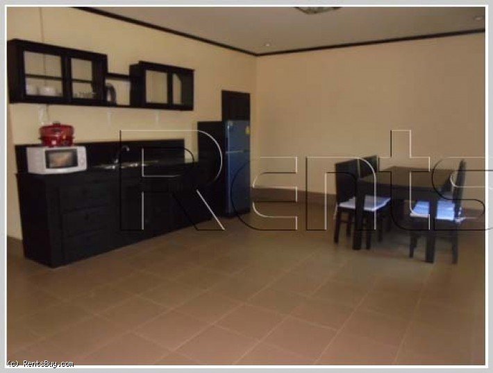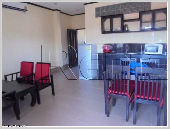 Fully furnished and serviced apartment with large living room. The whole building has 12 units, about 1 Km to Patuxai. Double rooms (2 bedroom and 2 bathroom) is 1,000 USD/month while the single room (1 bedroom and 1 bathroom) is 400 USD/month. The Internet, security, maid and laundry are included. for cleaning 2 time a weeks