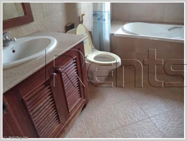 Are you looking for a big house with large garden in the city? Here is house for rent in Sisattanak, Vientiane Capital. It is a great place for spending your living. If you want to escape from the intensive every-day life, this is you place. It consists of living area, a kitchen, 4 bedrooms, 5 bathrooms with tile flooring and offer air condition, TV, refrigerator, balcony, electric hot water, furnishings, water supply and electricity. This is a beautiful and cozy house which is suitable for living with your family. Furthermore, it is located behind 103 Hospital nearby KIS, VIS, M-pointmart, market, hotels, school, restaurants and etc…