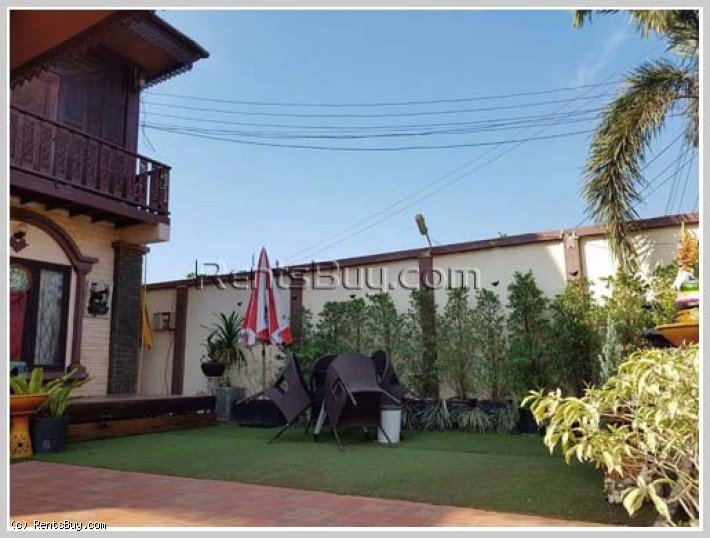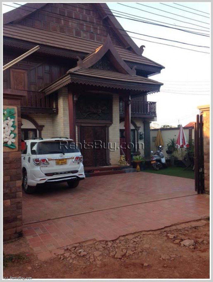 Two storey house with Lao and modern style for sale, close to developing area of Nongtha which is constructing turning city swamp to modern city by Hado Group of Vietnam. The property consists of 4 bedrooms, 5 bathrooms, kitchen, living room, beautiful garden and car parking. In the second floor is wooden design for flooring, ceiling, wall and the wooden big size of front door. In the neighborhood, there are local market, restaurants, bank, pharmacy, convenient store, and also only 4km to National University of Laos.