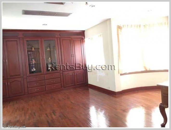 Modern house next to Mekong Riverfront for rent, about 800m from Sisattanak District hospital. The house comprises of fully furnished, 3 floors, wooden for flooring and furniture, 3 spacious bedrooms, 5 bathrooms, large size of living room, modern kitchen, car parking space, balcony for looking the panoramic view of Mekong River. In the vicinity, there are local market, hospital, mini-mart, shop, pharmacy, etc...