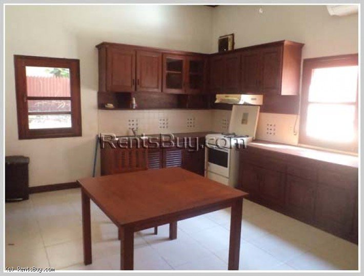 Lao Style Home for rent with fully furnished next to Mekong Riverfront in Sisattanak, location in good access area, wooden design on second floor, comprises 5 beautiful bedrooms, 4 bathrooms, kitchen, living room, nice balcony for viewing the Mekong river, car parking space, beautiful garden with some big trees. Its location also close to shop, Suanmon local fresh market, pharmacy and not far from Sisattanak District Hospital.