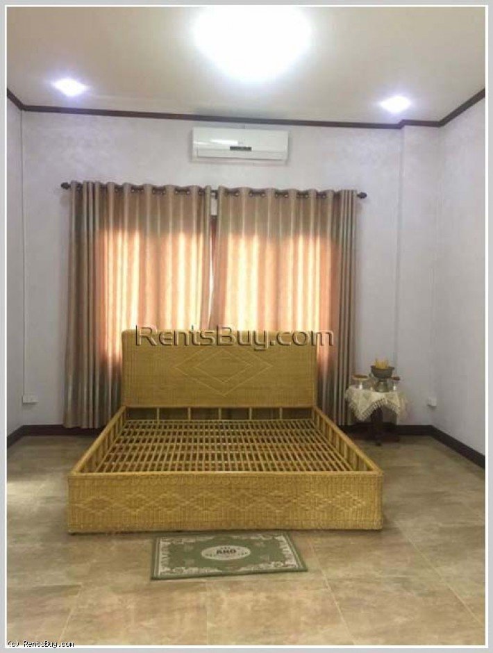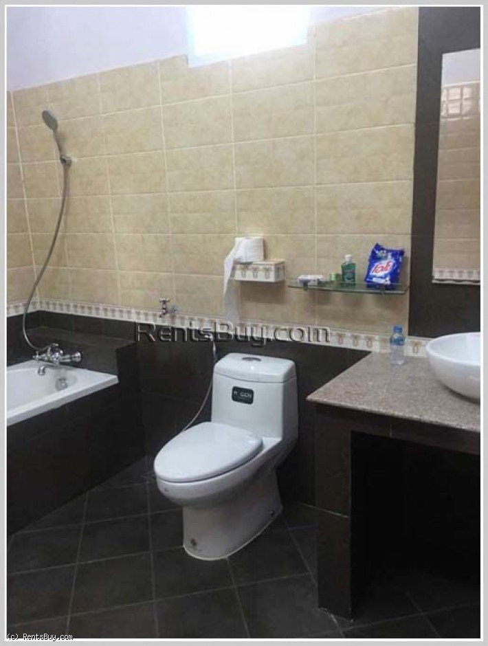 Modern house with fully furnished for rent, located in the South East of Vientiane city about 4km from Patouxay, in diplomatic area near Kiettisack International School. The house consists of 2 bedrooms, 3 bathrooms, living room, kitchen and car parking lot with concrete patio. In the neighborhood, there are local market, mini-mart, restaurant, pharmacy, 103 hospital, international school.