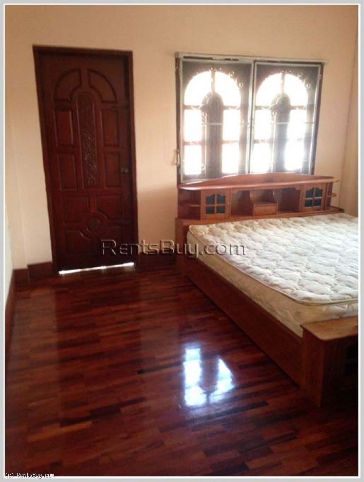 The house with fully furnished for rent. The location is in the Lao communities and business area in neighborhood of Patuxay. There are 3 bedrooms, 4 bathrooms.