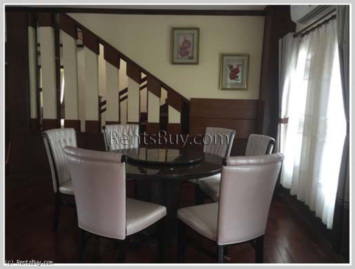 We offer you two-storey house with fully furnished and large garden, located in the East of Vientiane city near Huakhua market and about 4 Km from Patuxay.