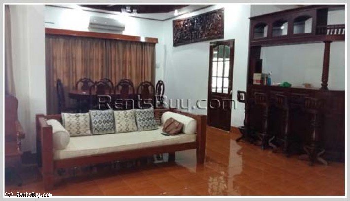 Nice villa house for rent with fully furnished in the Lao community and business area of Nongbon village, located in the East of City Center, about 60m from the main road and few minutes drive to Patuxay. It consists of 3 bedrooms, 3 bathrooms, living room, and kitchen, front yard with concrete patio, car parking space, and strong fence. In the neighborhood, there are ICBC Chinese bank, Indochina Bank, coffee shop, restaurant, local market, pharmacy and etc...