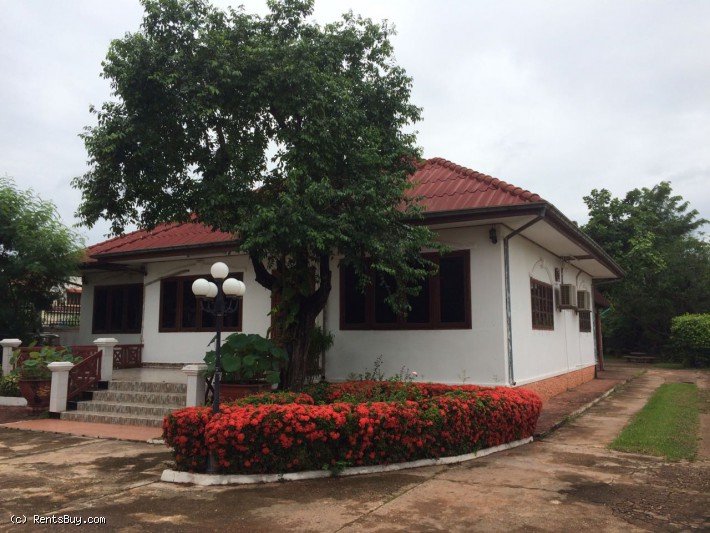 Affordable villa house with large parking and fully furnished for rent, located in the Lao community area near Nongtha Paradise Land Project, about 3 Km Southeast from City Center.