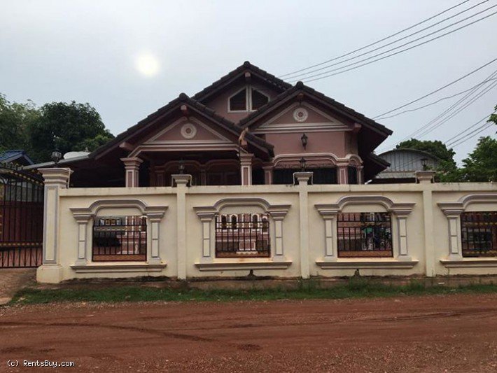 Pretty house with fully furnished for rent near Lakeview Golf Course, located in the East of City Center, about 7 Km from Patuxay. It comprises of 3 bedrooms, 3 bathrooms, living room, kitchen and large front yard with car parking.