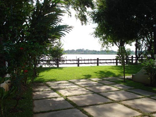 Contemporary house design with traditional taste of Lao and fully furnished for rent, it is wooden interior design, located in the South of City Center about 7 Km from Patuxay. There are 3 bedrooms, 3 bathrooms, living room, kitchen and large front yard with car parking lot and big beautiful garden with panaramic view of peaceful Mekong River.